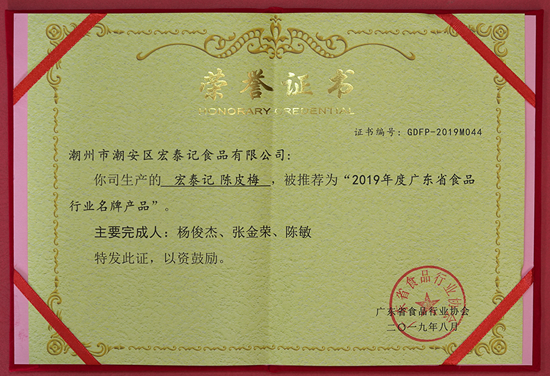 潮州市潮安区宏泰记食品有限公司以“中国食品名镇——庵埠”为依托,是一家集蜜饯、糖果研发、生产、销售于一体的民营企业公司以质量求生存,以品质求发展!通过严格执行国际质量标准管理,结合科学的研发、生产、营销模式,在此条件下公司生产的“加应子”、“酸甜杨梅”、“陈皮梅”等产品多次获得行业殊荣!公司始终坚持:以优秀的企业文化打造和提升企业核心竞争力,践行“优质原料、卓越工艺、质量为先、诚信为本;安全生产、预防为主、做放心食品回馈顾客”的诚信质量方针;履行“做放心食品、让祖国放心、让人民放心”豪迈的行业使命;宏扬“领先、卓越”的企业精神;唱响“快乐工作、幸福生活”的企业口号,引导企业的核心价值观!使公司在发展过程中牢固树立了企业在蜜饯行业良好的社会公众形象!